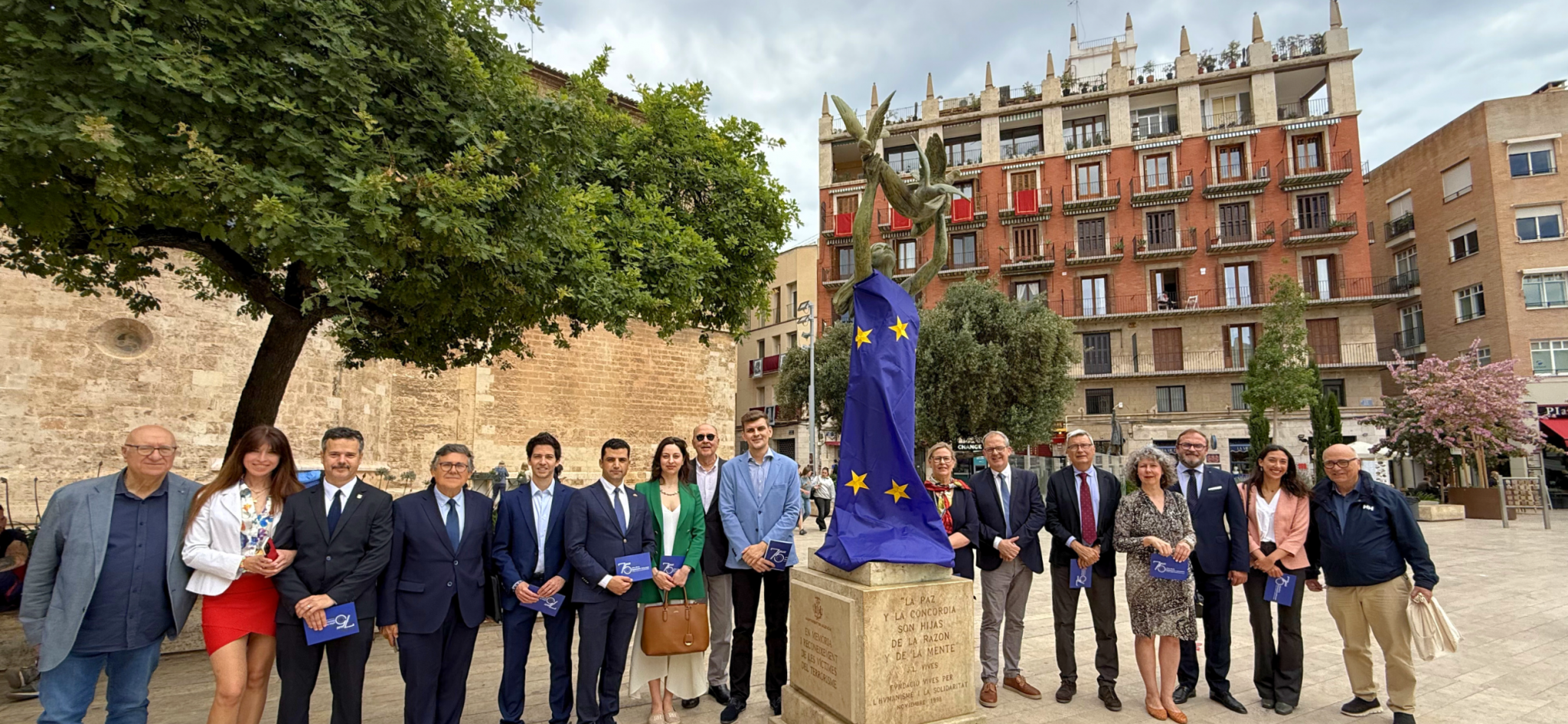 Tras la iniciativa del Instituto 9 de Mayo del año pasado, la ciudadanía valenciana ha podido volver a presenciar, durante toda la jornada del del Día de Europa, la figura alegórica del Monumento a la Paz con la bandera azul de las doce estrellas, aportada por el i9M. Esta acción, apadrinada…